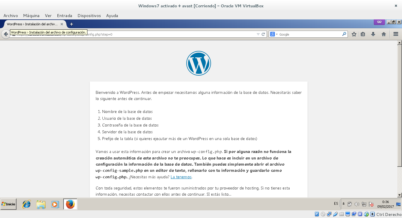 Cuando vayamos a acceder a nuestro sitio nos encontraremos con la siguiente sorpresa: